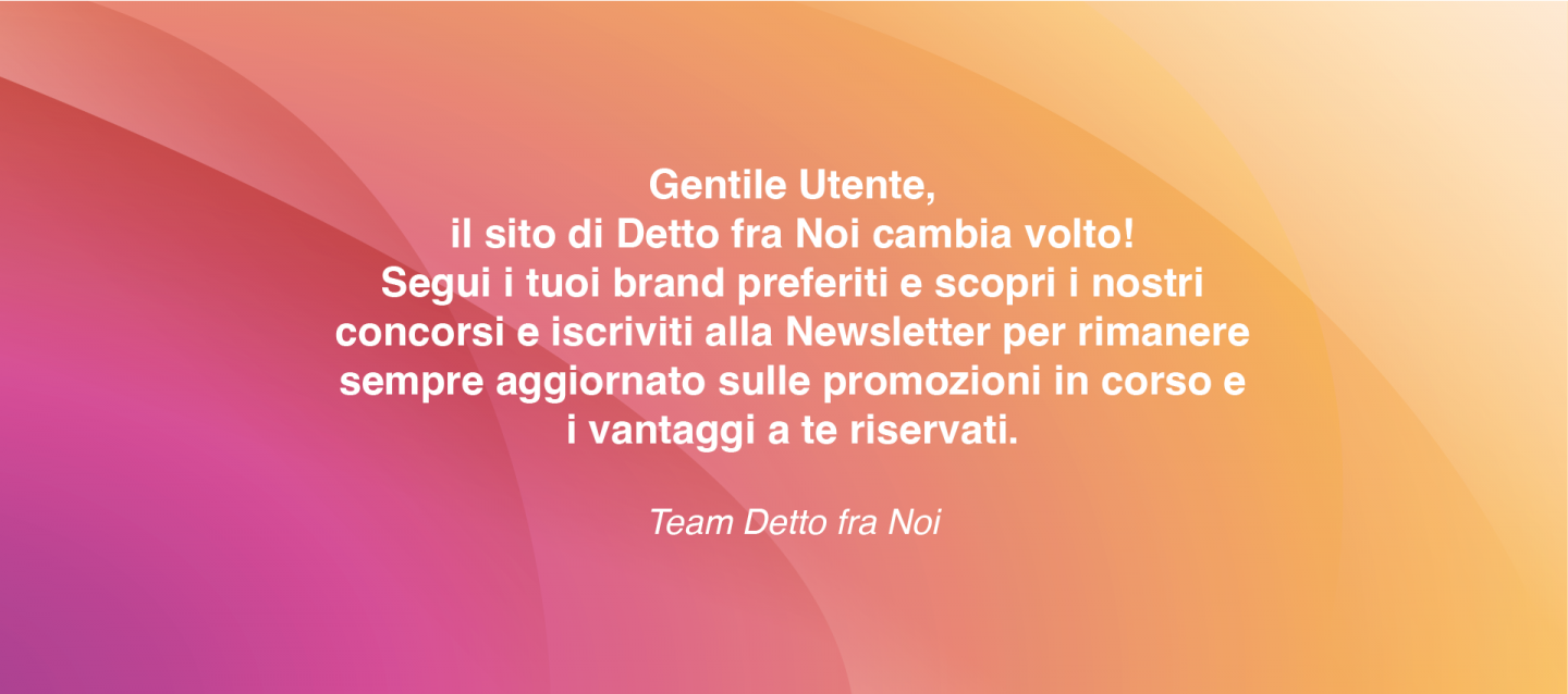 MENTADENT SUNSILK DOVE DOVE MEN CARE CIF LYSOFORM SVELTO COCCOLINO CALVÉ KNORR Hellman's Accedi per scoprire tutti i vantaggi esclusivi che Dettofranoi riserva ai propri clienti. Non sei ancora registrato? Bastano pochi passi. Entra CONCORSI Scopri qui tutti i regolamenti dei concorsi e delle promozioni in corso Regolamenti concorsi in punto vendita Regolamenti concorsi online